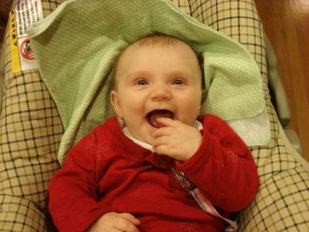 I was hoping I’d be done with my latest pair of socks so I could post pictures, but sadly I have not yet begun the toe on the 2nd sock. But I have a good excuse. And she is very cute.