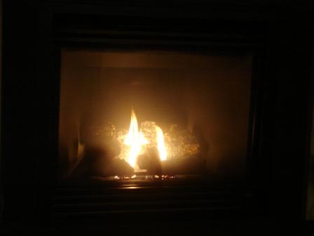 Doesn’t it look great? Who’d a thunk a gas fireplace could look so real? And it put out a nice heat and didn’t smell like burning propane. How psyched am I????