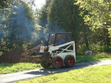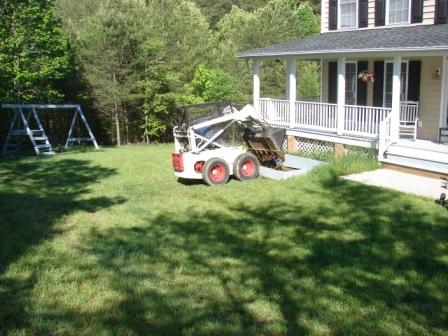 But the last week or two has been pretty great, I have to admit. We have had some major landscape plans coming to fruition, which makes me very happy. I had one side of the garden area out front bordered in. The front and back deck have been getting stained and are almost done. Paul made me 2 raised garden beds and set them out front and ordered up some dirt. That was his excuse to play with his new toy:
