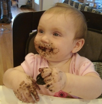 Now they just need to grow big and strong and give us some yummy tomatoes and veggies! So the work continues. The other box needs to be populated with some squash and I need some flowers to fill in the gaps. But everything is coming along nicely and I think it’ll look good for Neve’s birthday this weekend. My baby’s turning 5! And speaking of babies, my little Oona discovered Oreos a few days ago. Yummy!