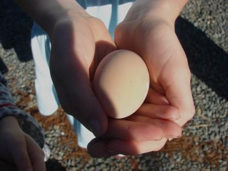 It’s a small thing, to be sure, but its potential is great. Not only for the life inside of it (well, actually Emily at that sunny side up this morning) but because it means I at least have ONE laying hen!