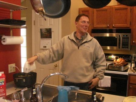 Master chef dad, whipping the potatoes. I am starving just thinking back on it. My brother will be happy to know that this was the first year we did not run of out masjed potatoes. Dad said it was because he made “an ass load of them”. And yummy they were, with the mashed squash (acorn?) stuffing with sausage (oh droooooooool) green beans, gravy………this is torture.