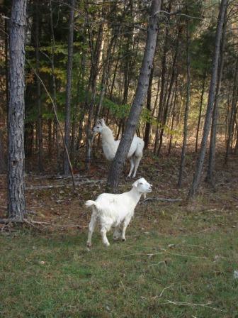Given the situation I’ve decided to hold off on acquiring any more goats for now – I’ve not got enough shelter for them and should my little Milkshakes give birth I have no decent place to keep a kid warm or to milk little Miss Nanny Goat. Fortunately she is content enough with Mr. Jerry the Llama (that name still kills me……) and he is happy with her as well. Soon I’ll have to have him gelded (castrated) since he is about 2 now and on the brink of “maturity”. I don’t want him attempting to breed a certain tiny goat when she goes into heat (yes, they do try…..that’s why they say to geld them if you want to use them as guard llamas).