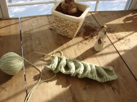 Now the power has returned and there are lights to knit by and a stove to cook on and tv to watch, but I need the snow to be gone as well. I have a grim job to do and it can’t be done with frozen ground.