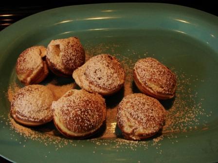 Sundays here are something special. They are Aebelskiver Sundays. That means a big mound of small, fluffy, filled pancake puffs for brunch.