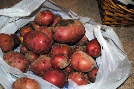 I also managed two other feats last night. I pulled a decent crop of red potatoes out of the garden: