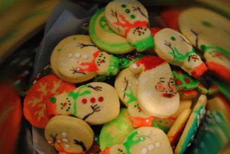 Meanwhile, how about these cookies my mother made??? Hand painted Santas and Snowmen! I think she needs to sell those mail – order, no?????
