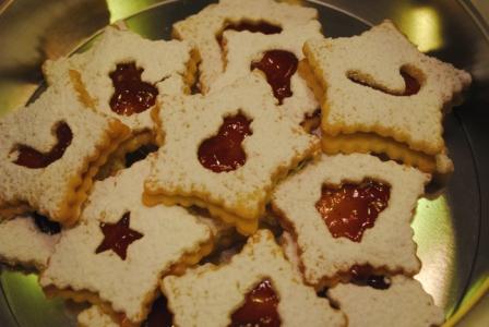 Every year there are specific types of cookies which are a must. These are: Frosted butter cookies, frosted gingerbread cookies, chocolate – dipped macaroons, Rugelach, Linzer cookies, and Florentine cookies. In addition I try a few new types each year, and sometimes I will throw in some Hamantaschen for good measure. Those are better suited to Purim than Christmas, however. This year I am adding in Chocolate-Cherry Mandelbrot and Chocolate-Hazelnut Thumbprints. I’ll let you know how they all turn out.