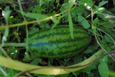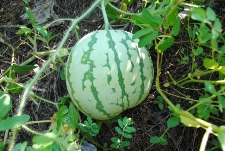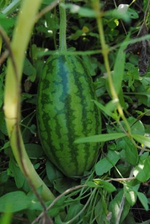 It’s a Dixie Queen Watermelon, and I hadn’t even realized it was there until today. There’s several little ones around it.