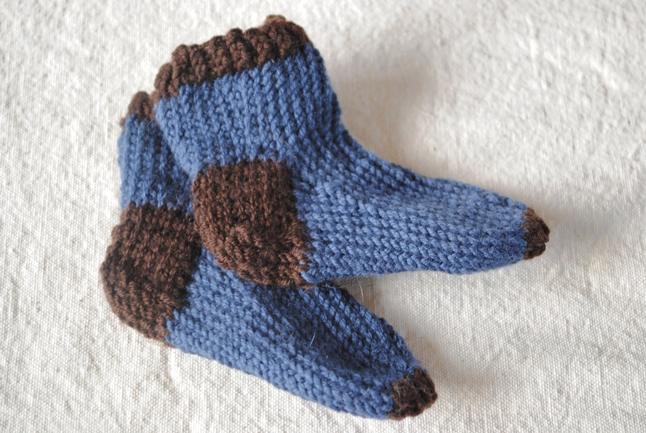 My friend Theresa got a pair just like this in green, along with a striped hat.  This pair will go to my friend Laura, along with another striped hat.