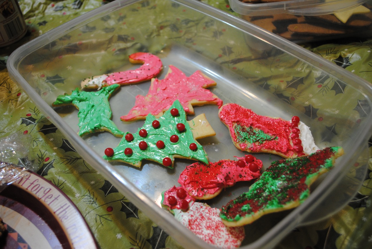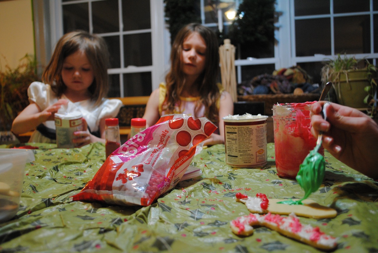 I made dozens and dozens of cookie shapes and set them out on the table along with frosting and sprinkles for the kids to decorate. It kept them good and busy for quite awhile, and I didn’t have to do it.