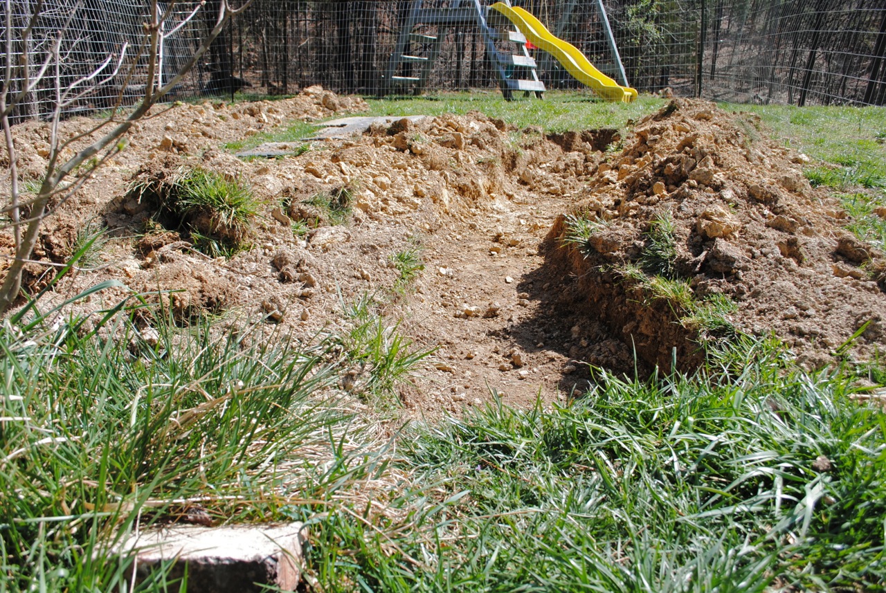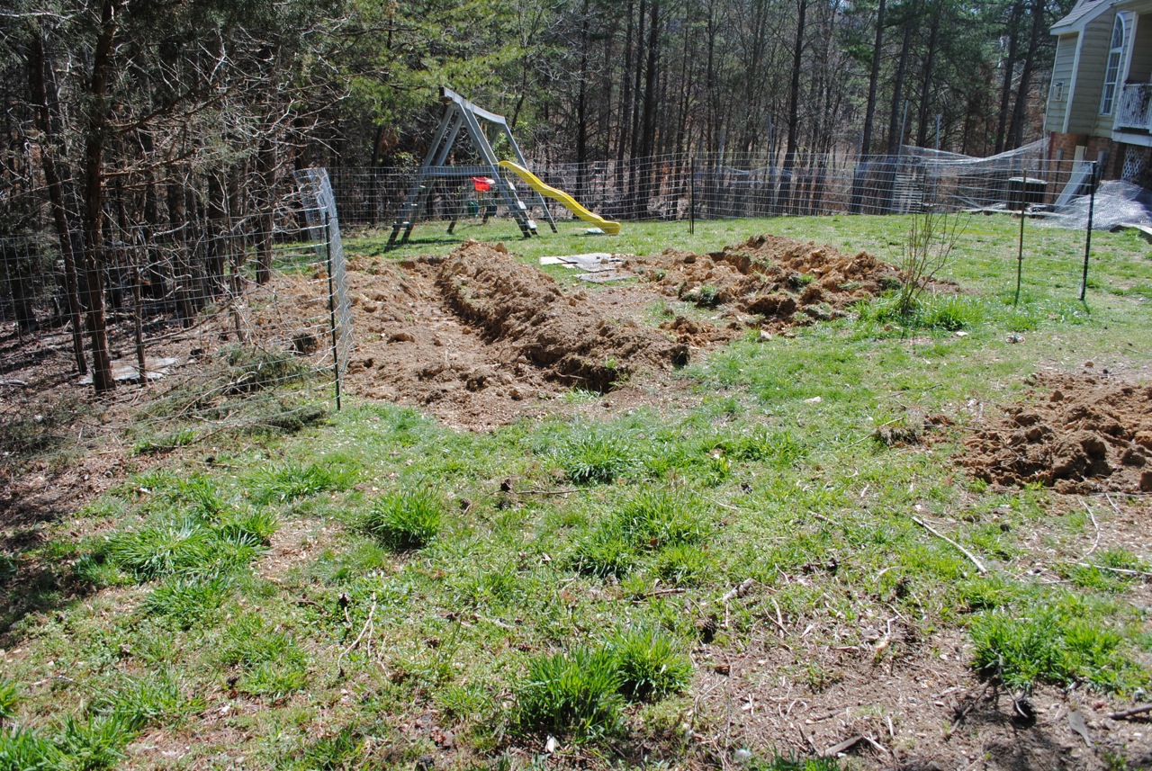 To do that, I started digging furrows, or trenches. I probably made them too wide and too deep (stubborn digging without a plan isn’t the best idea) but there are now 5 long raised beds out there. They still need to be tilled, since the dirt is nearly solid clay. Thankfully I still have a whole shed full of composted llama and goat poo to mix in. Still, I am concerned I may need to order up some dirt due to the extremely poor quality of the soil I dug out of our ground.