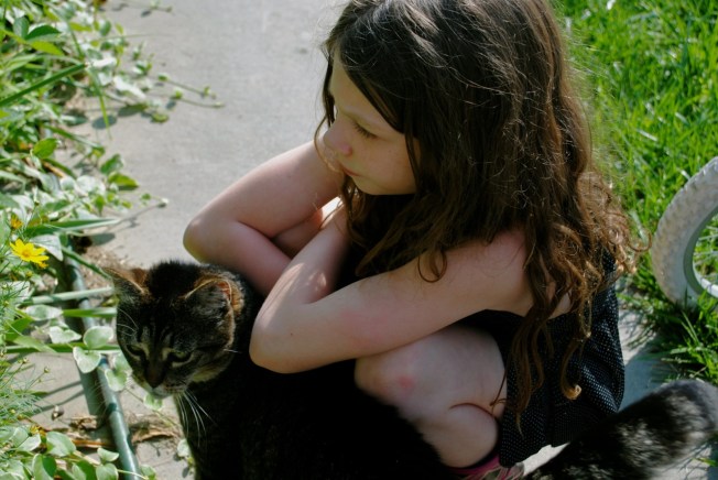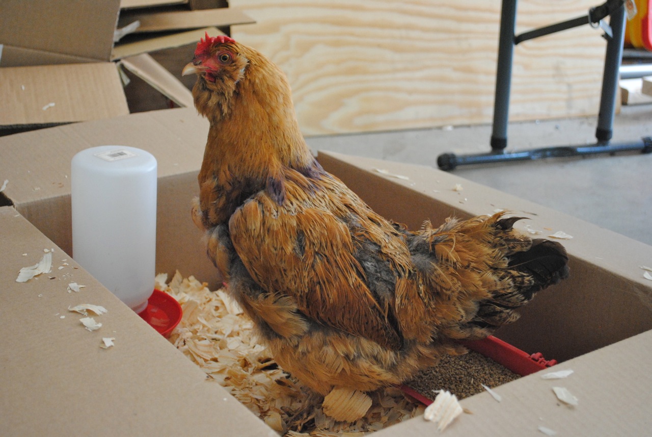 Emily didn’t take it well. SHe sat in the garage with Fleur and cried as Paul and I tried to figure out what the #$*% to do next (the chicken proceeded to poop all over Emily AND lay an egg on her).
