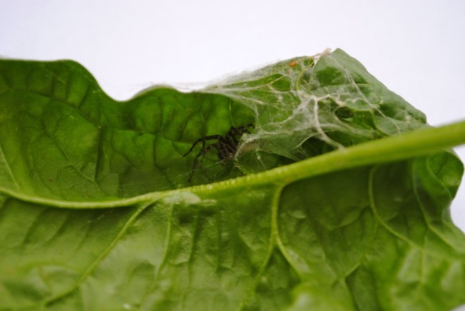 I don’t want to eat bug litter. You know, if a few little bugs escape my notice and get cooked up, so be it. But wads of webbing? No thank you. A hidden chrysalis? Even worse. But worst of all, this bit of webbing could (and did) conceal this:
