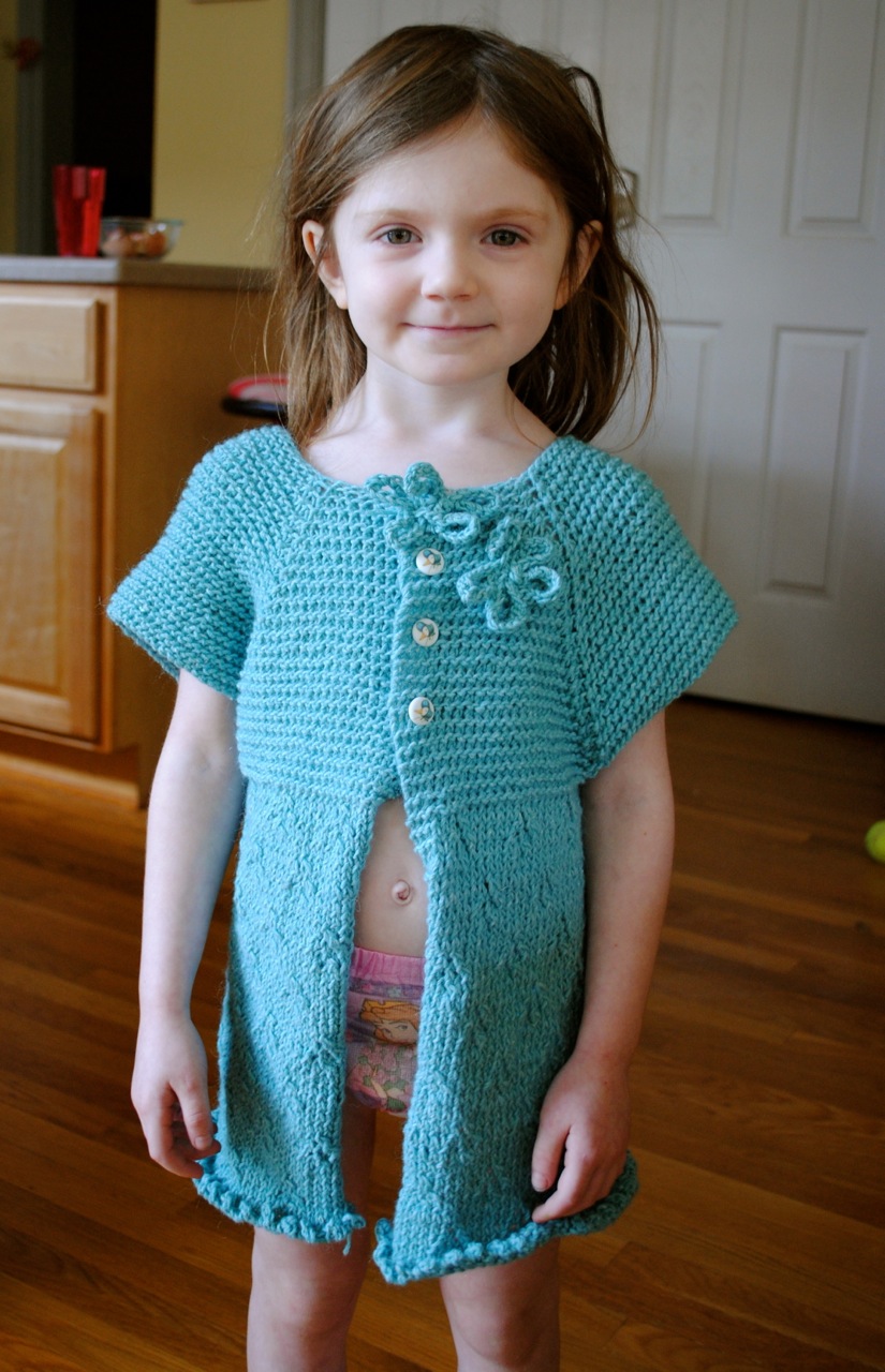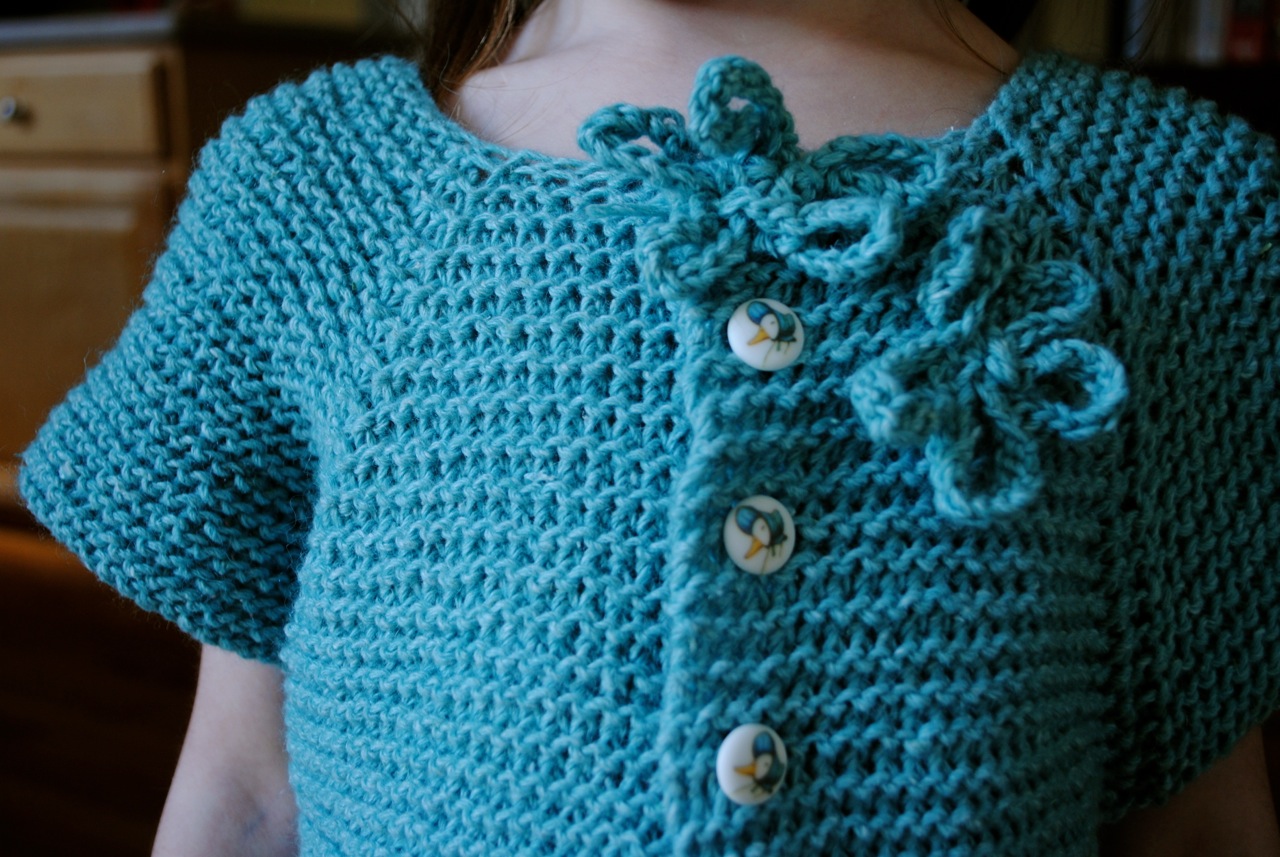 The pattern is called Boheme, and I used Juniper Moon Farm’s Sabine. It knit up super fast, and I added two little i-cord flowers, similar to the Boheme sweater that was gifted to Oona in December by our friend Suzy Q.