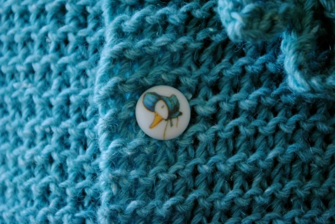 The buttons were some adorable Jemima Puddleduck ones I found at JoAnns ages ago, and was thrilled to finally have something that matched so perfectly!
