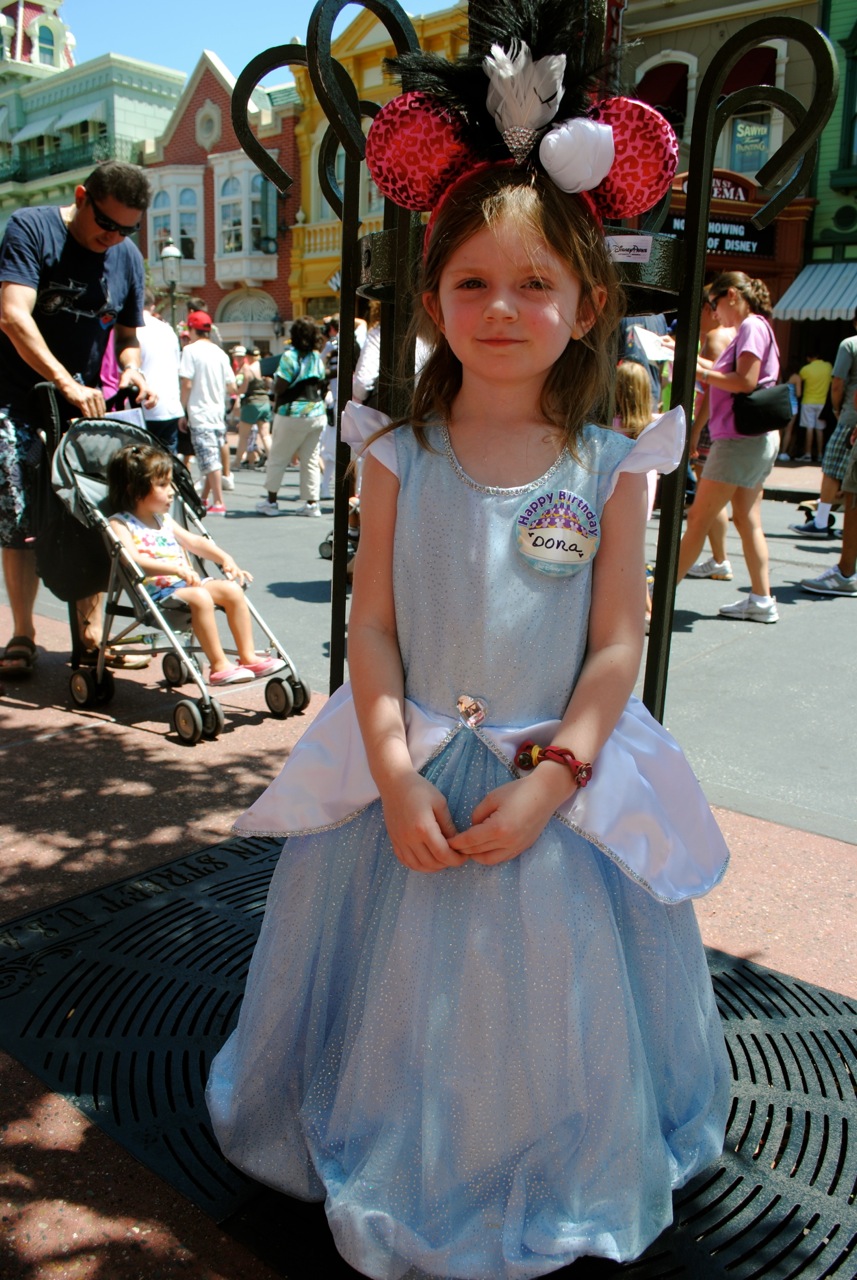 I will say this about Disney, though: some things they do very, very right.  We had Oona wear her Cinderella dress to the Magic Kingdom on her birthday.  To that, we got a button from a shop just inside the park that had her name and announced her birthday.  EVERY “cast member” (employee) all day long greeted her with “Happy Birthday Princess!”.  It made her millenium.