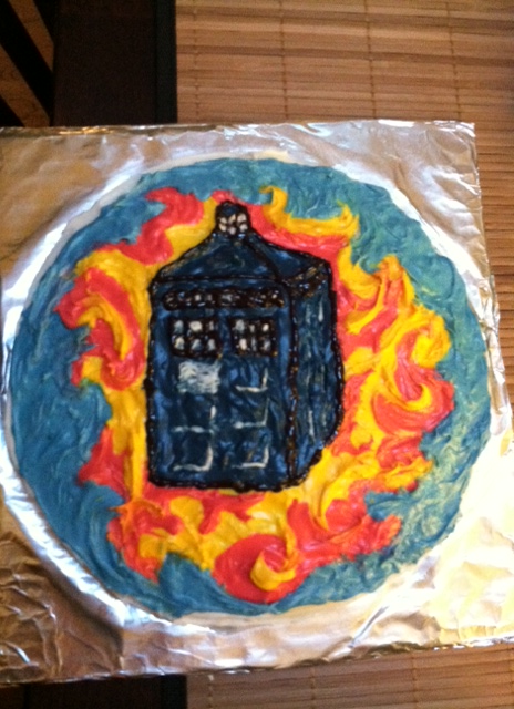 A cake with a Dr. Who Tardis on it, decorated by her very talented husband. Do they know me or what!