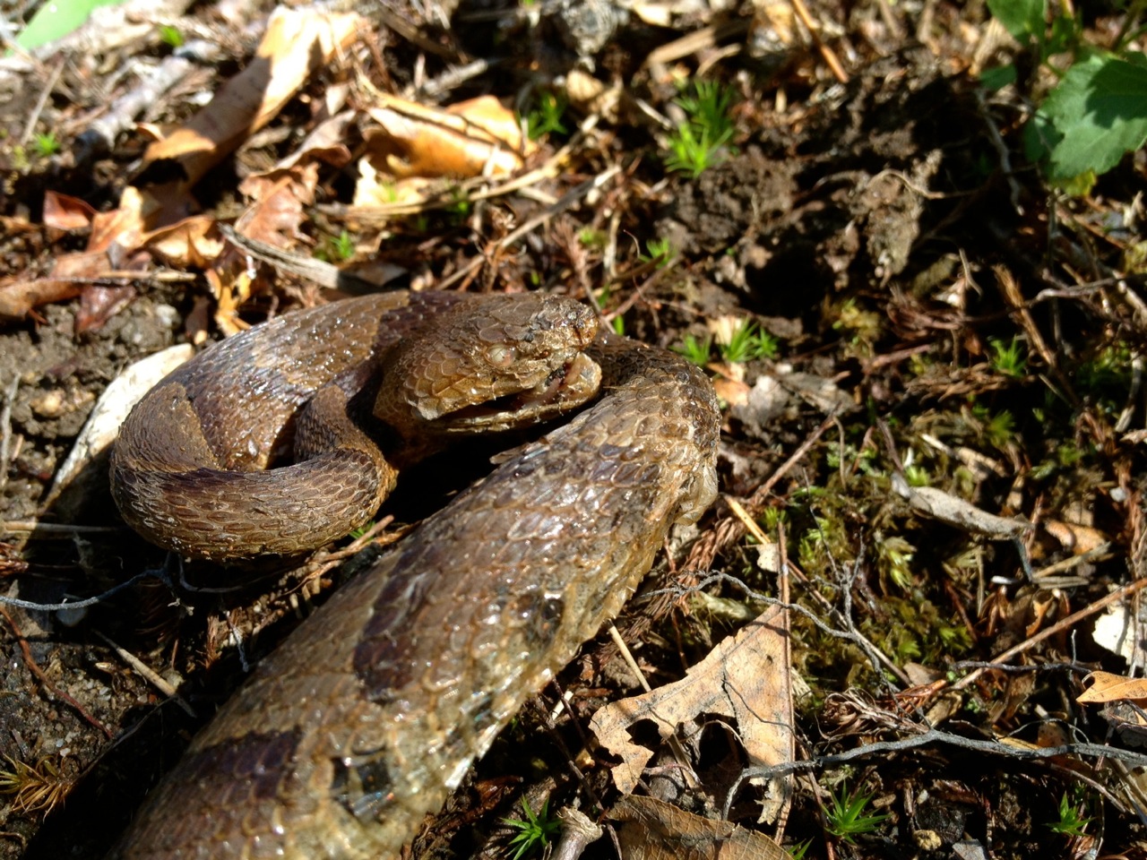 This copperhead snake tried to escape a brush pile we were burning. He didn’t make it, and we are glad of that because it saved us the trouble of having to kill this very poisonous creature. This time of year the snakes are looking for dens in which to spend the winter – usually with other snakes. We are keeping this in mind as we continue to burn brush piles and clean out the debris from the stream, because there are sure to be more where this guy came from.