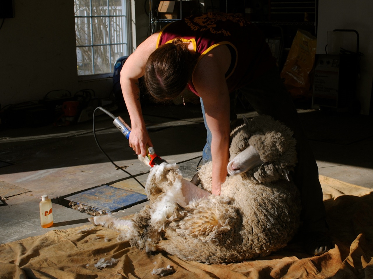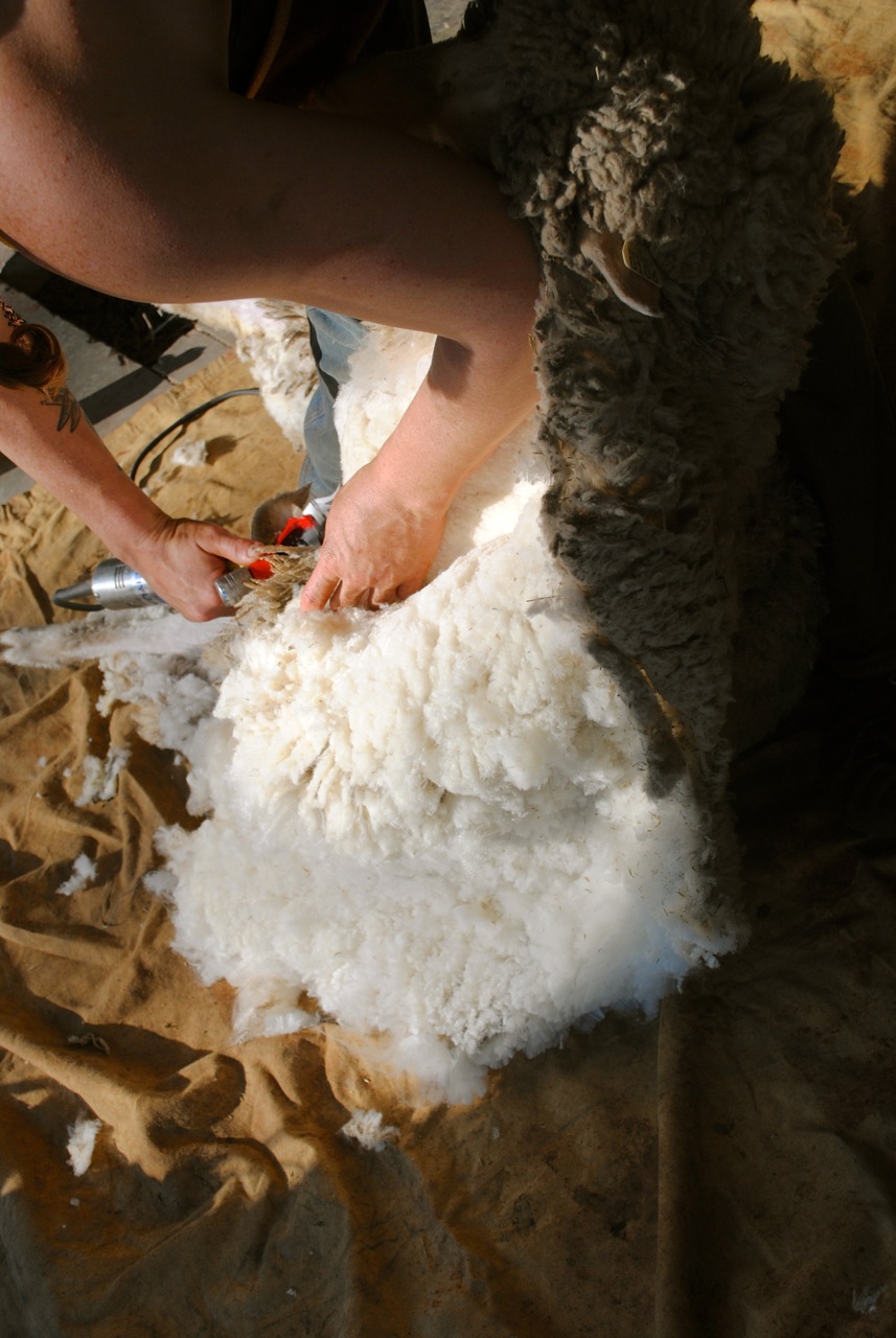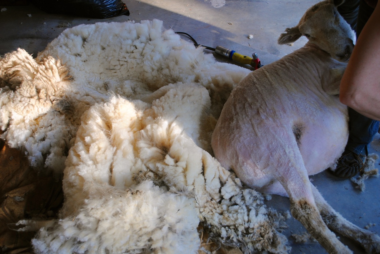 I was excited to see what kind of condition our sheep are in underneath all that wool, and to see if Alabama still looked like a planetarium once he was shorn.