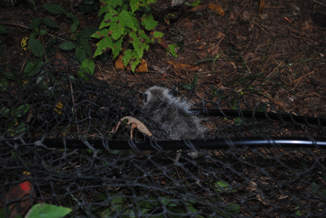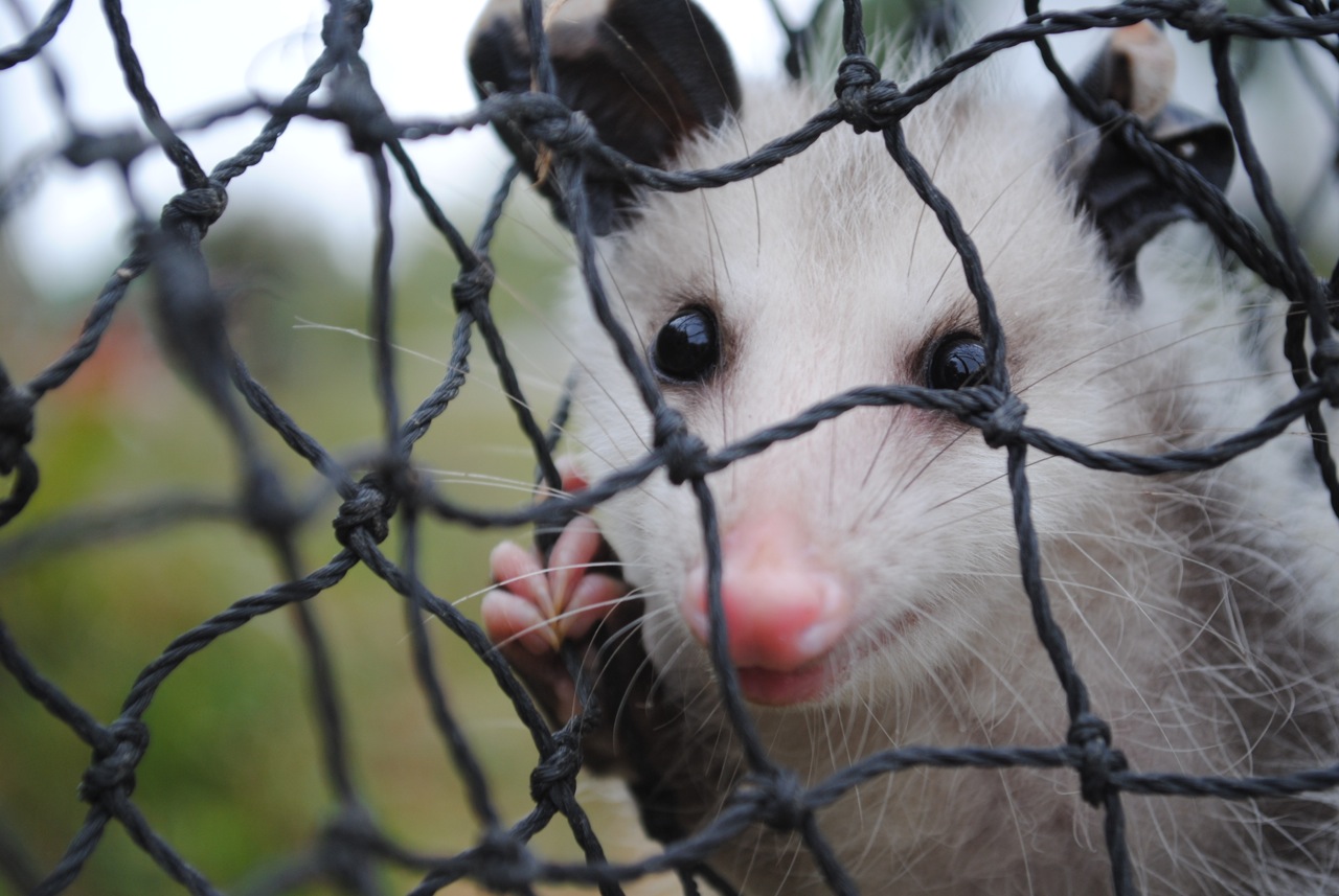 He held tight to one end of the net with his tail, hoping he could squeeze out through one of the holes in the net. As he sat there with the humans all around him, he saw trees coming into view.