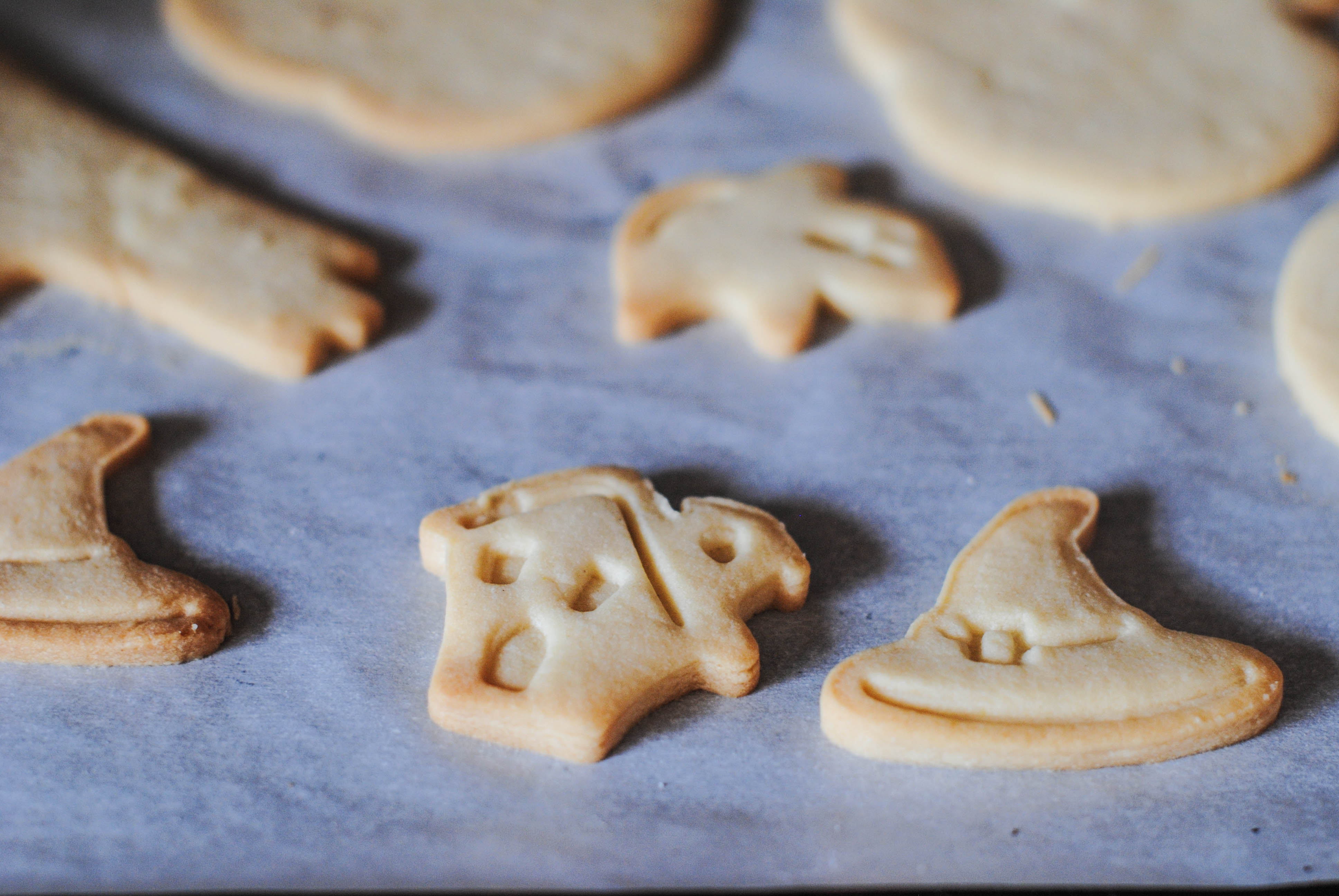 I used some mini cookie cutters to make some plain Halloween cookies for snacking as well.