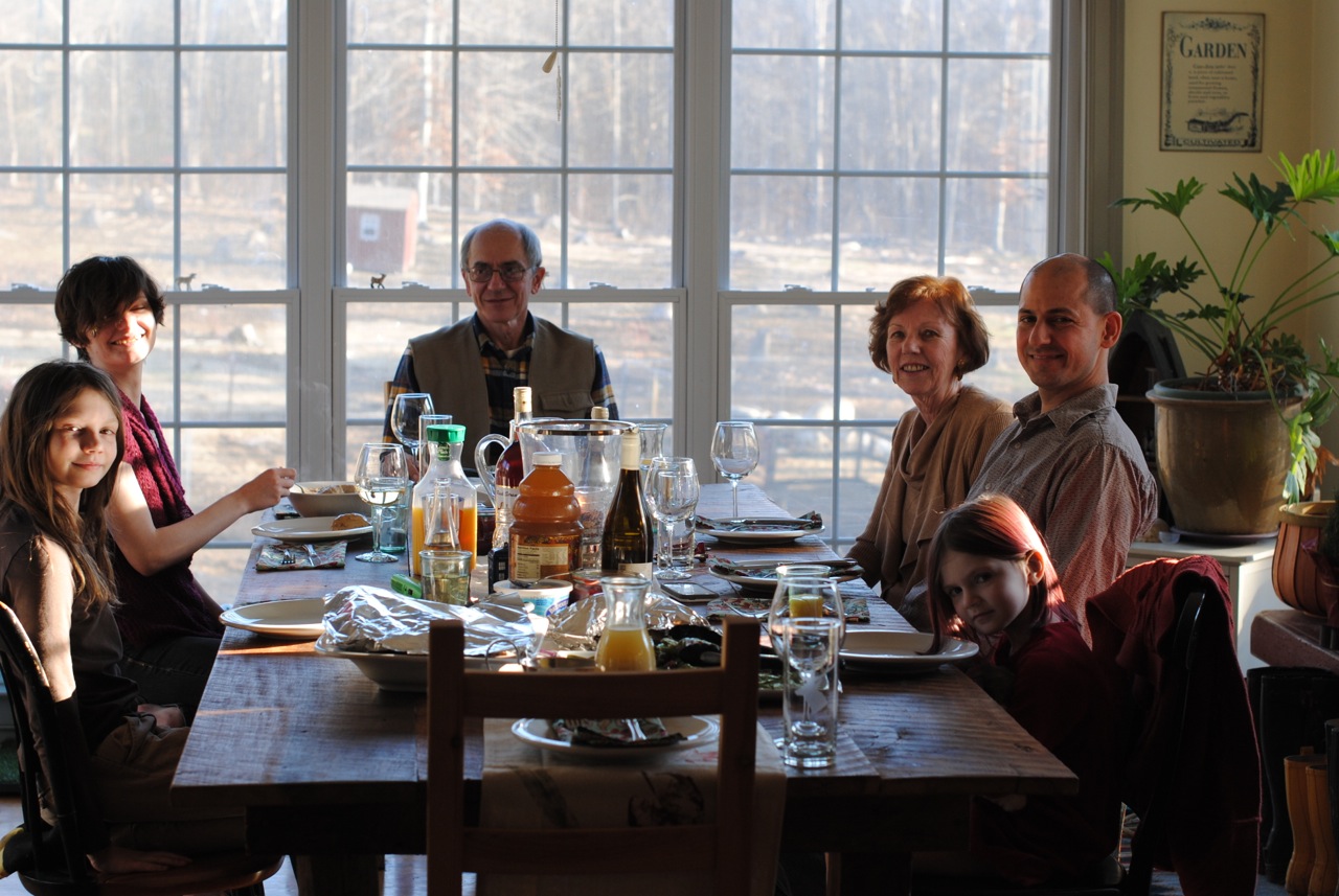 Obligatory meal photo – we had brined, roasted turkey (Trader Joe’s – easiest bird I have ever cooked!) with homemade gravy from pan drippings, roasted green beans with red onions, garlic and pancetta, sweet potato casserole with mini marshmallows on top (the kids demanded it), Susan’s stuffing, mashed potatoes (made in the crockpot!!! BEST thing ever!), homemade rolls, and two kinds of cranberry sauce (bourbon-cranberry and cranberry chutney).