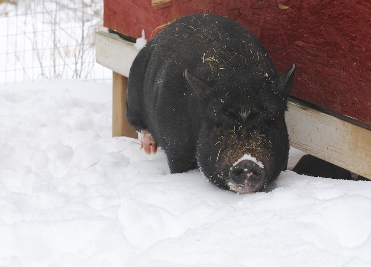 So far at the farm we’ve got 8 inches, and we’re expecting another one or two before it’s all over. I took the break between snowfalls to take pictures of everyone outside.