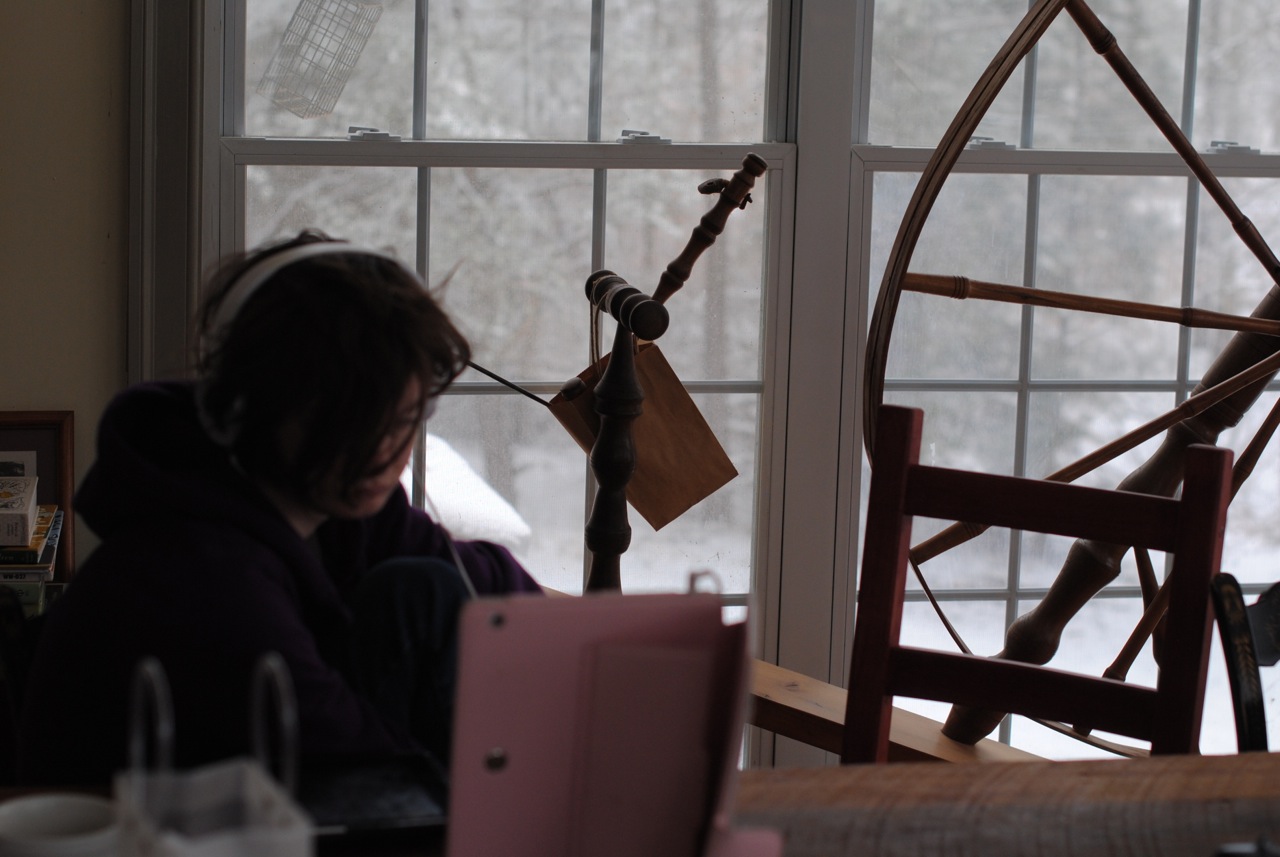 Once I was back in the house it was clear that everyone’s motivation to do any school work was below zero. Neve and Oona were playing nicely and quietly by the fire (and that in itself is so unusual I was loathe to interrupt it). Emily was reading. I just wanted to knit and catch up on The Walking Dead.