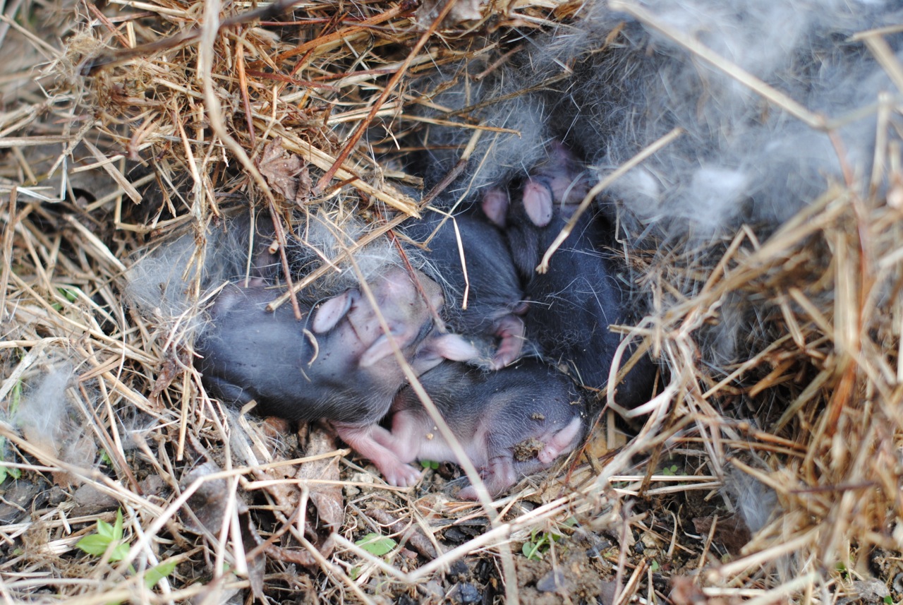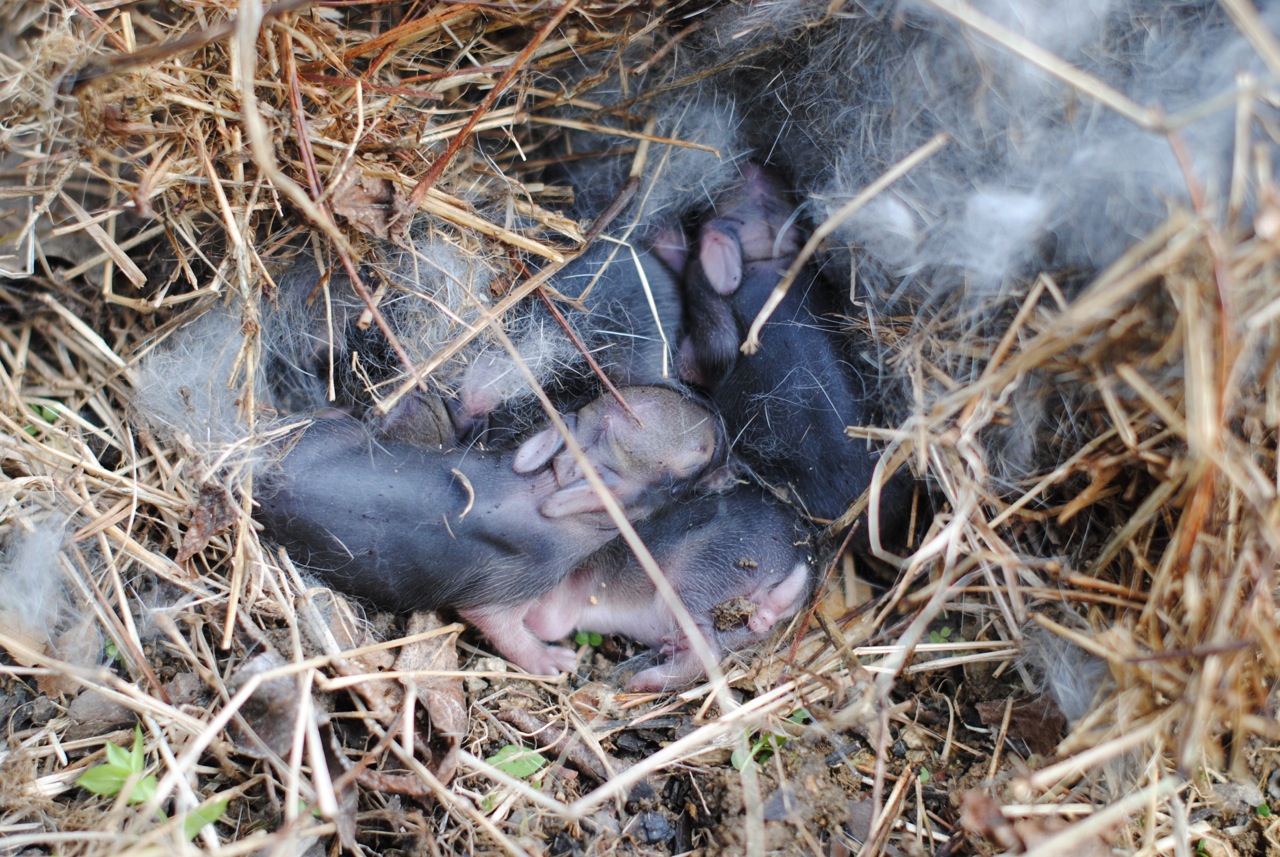 All of that fuzz was rabbit fur, and that clump was a nest of babies; a FLUFFLE of bunnies, if you will.