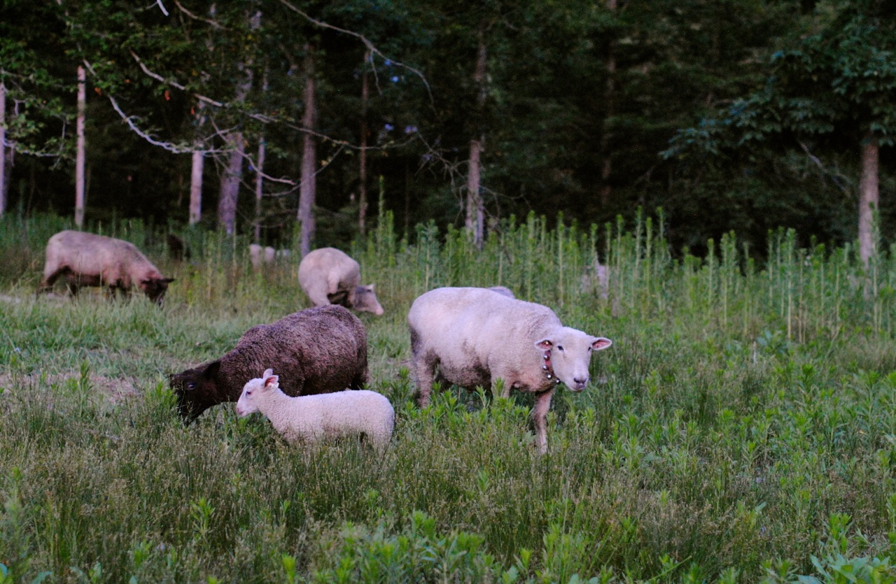 This evening after feeding we opened the gates to the big field. As the light was fading, all the mamas and lambs found their way out to fresh grass and weeds. On the one hand, it feel so wonderful to be able to put them out onto pasture; on the other hand it makes me terribly anxious sending our babies out into such a big space! At first there was much commotion and noise as the lambs frantically called after their mamas, who were so engrossed in the new green foodstuffs that they paid no heed to their babies’ distress.