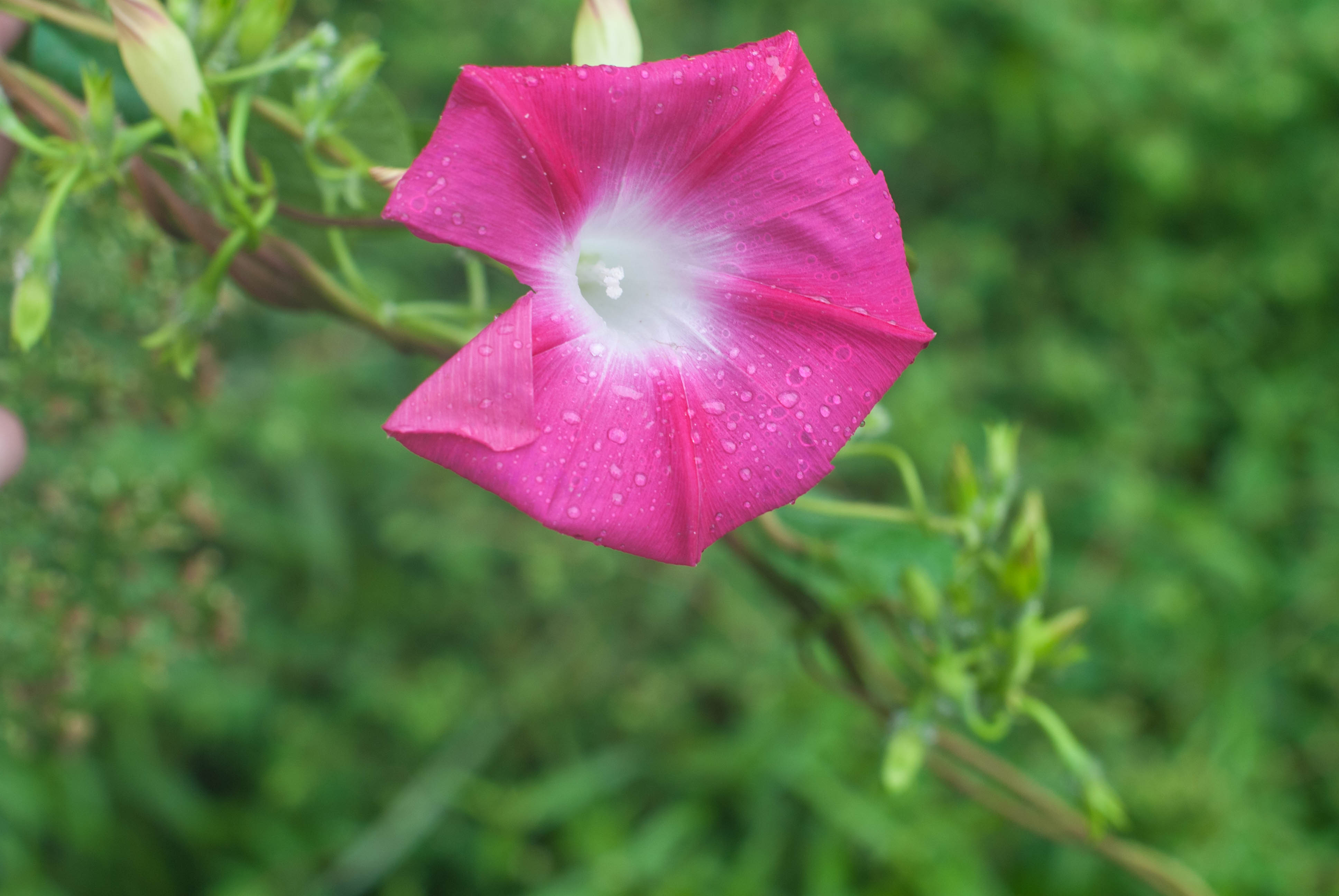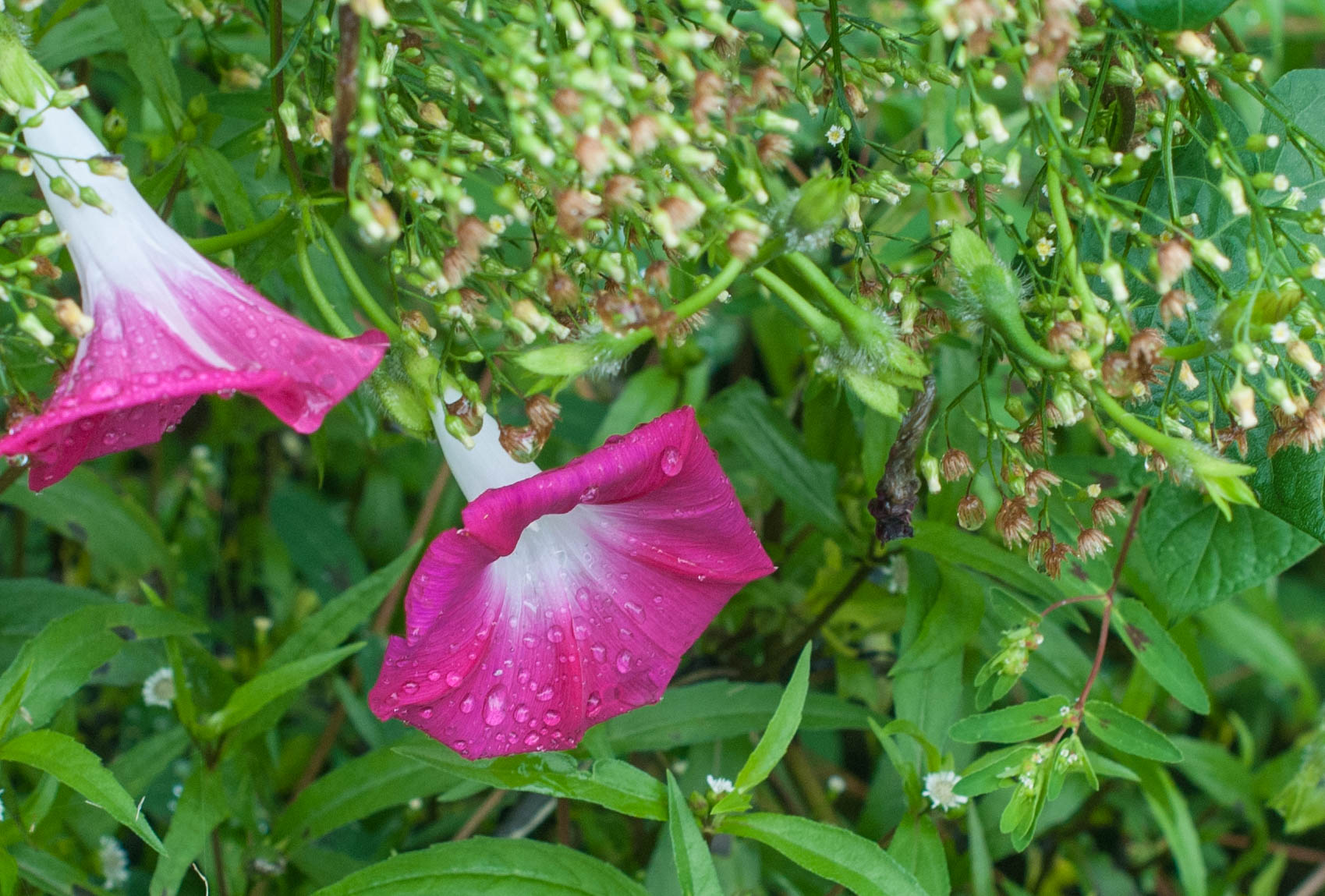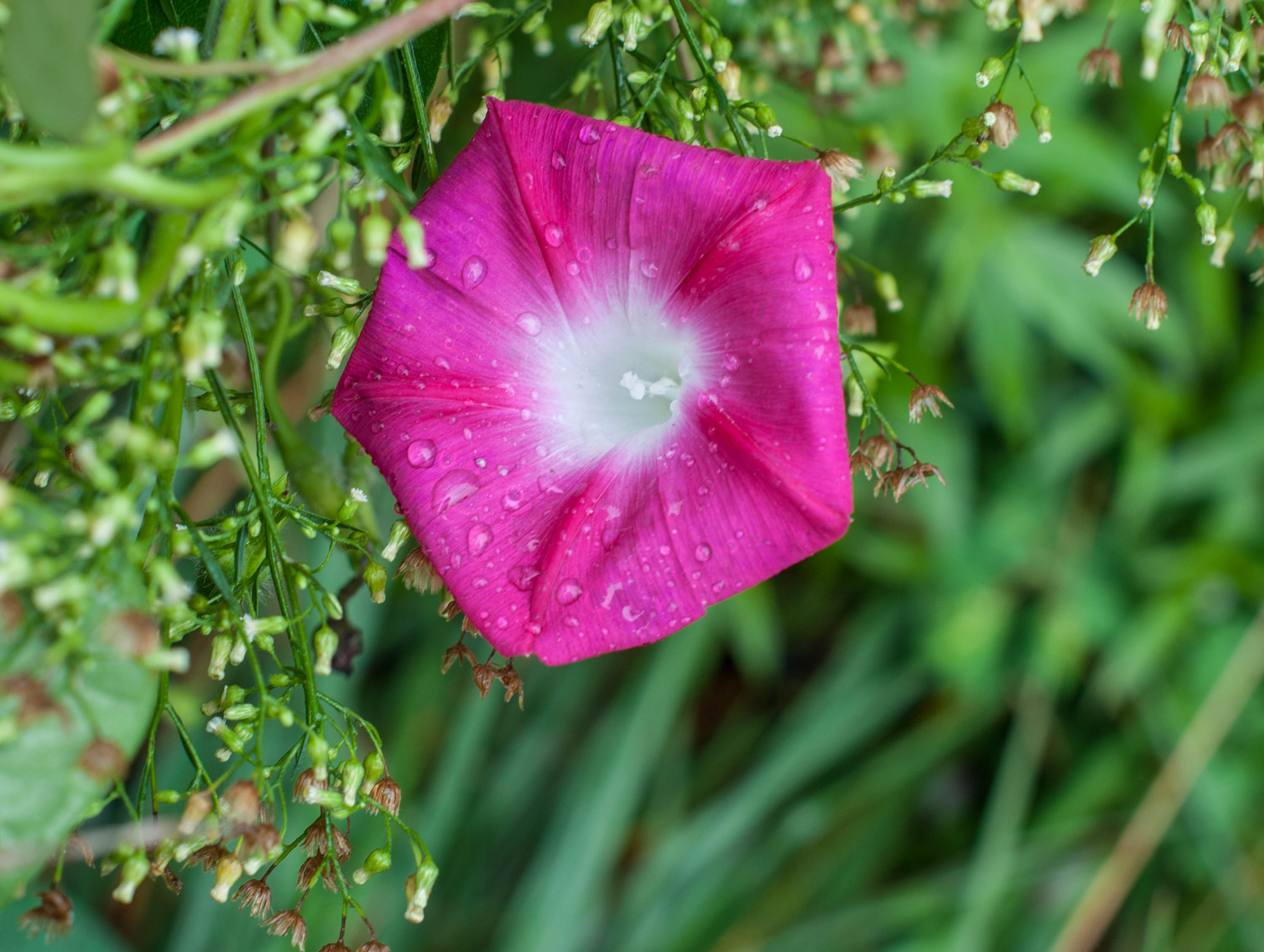 The morning glories are blooming, which makes me crazy happy, and it means my birthday is just around the corner. Yet it’s still weird because I am just now getting my first ripe tomatoes off the vines (having planted them late didn’t help).