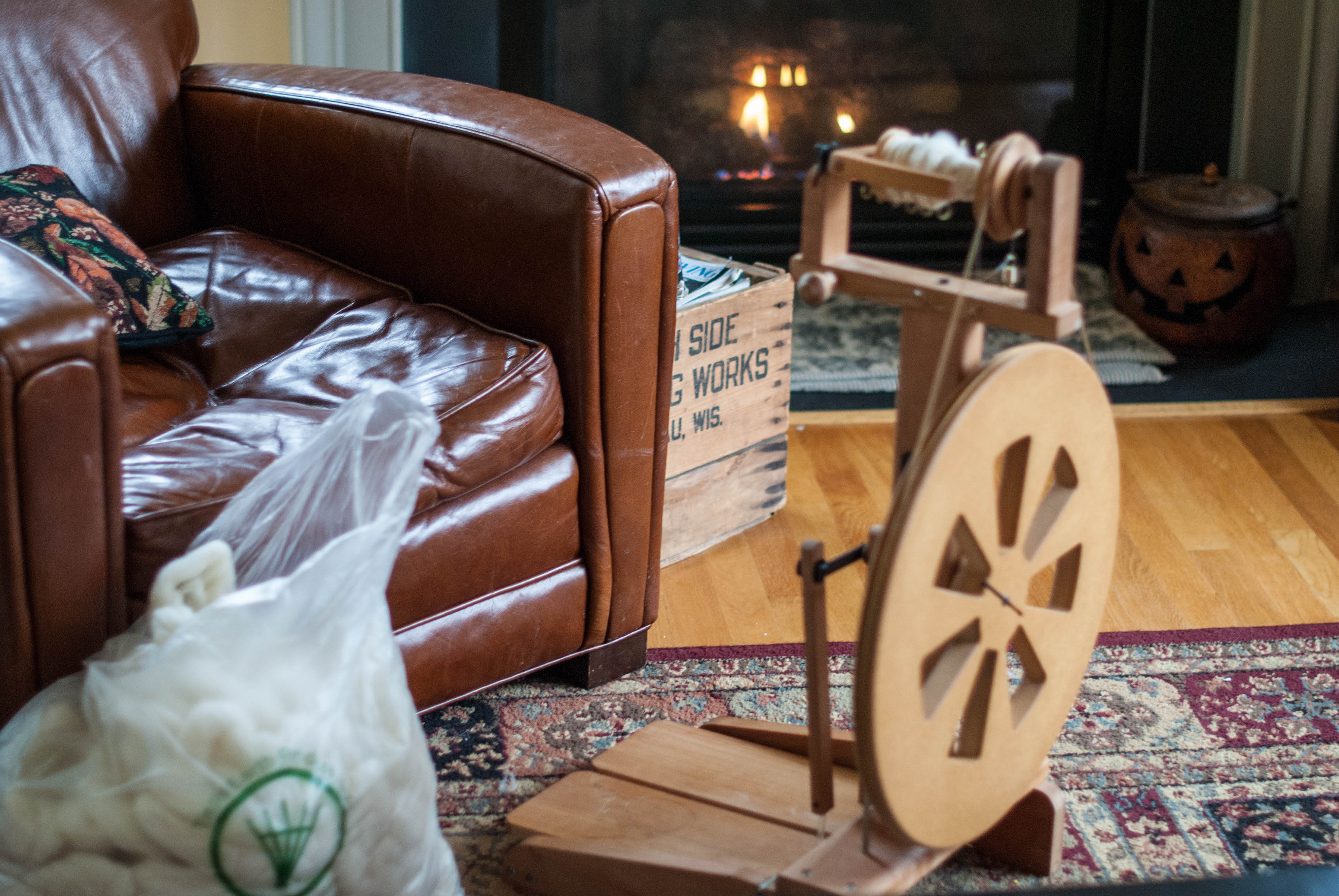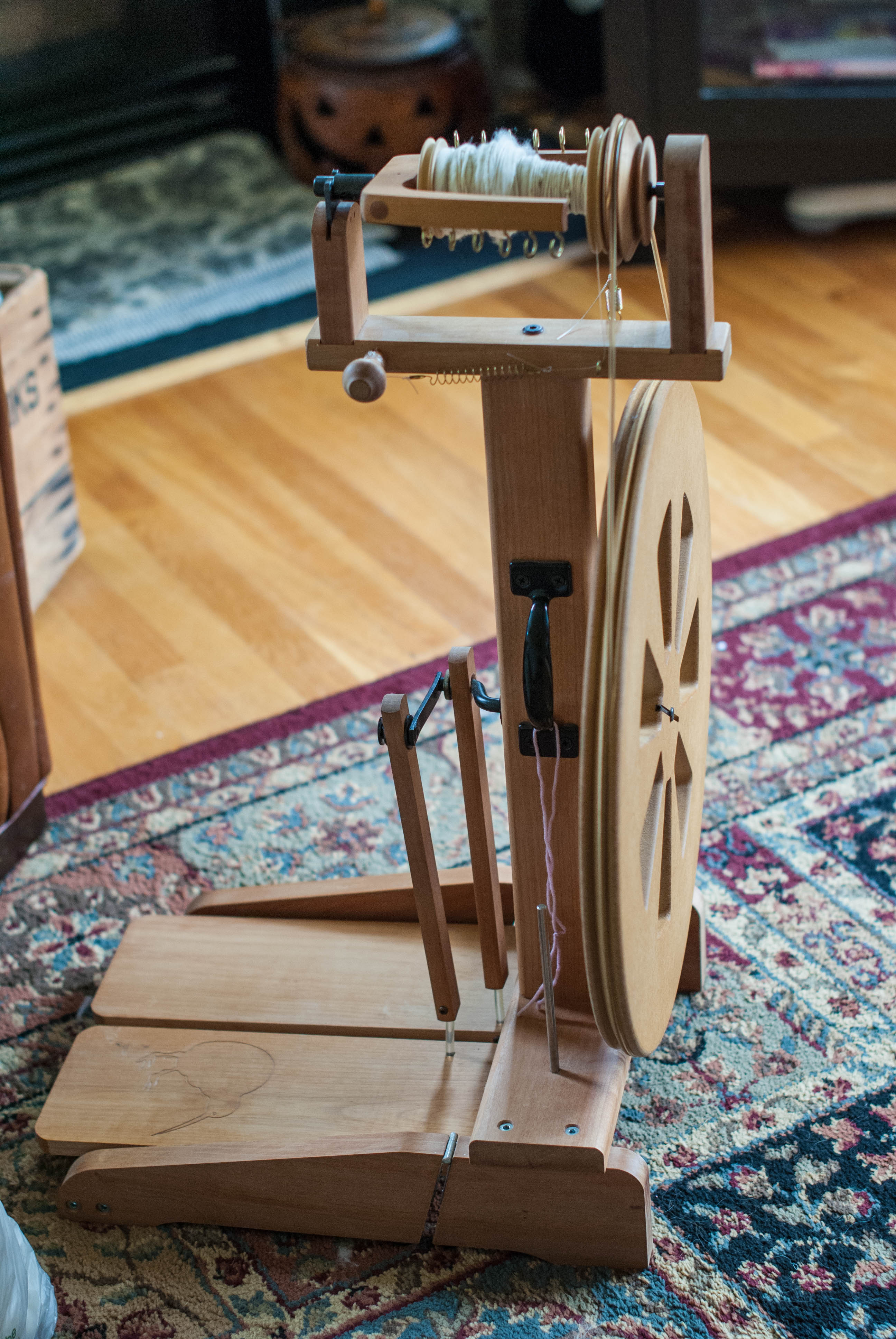 That, my friends, is a beautiful Ashford Kiwi spinning wheel. I am beyond lucky and spoiled to have some incredibly wonderful friends, because this was given to me by my friend Kris, who is downsizing in preparation for a move.   I’ve been spending a lot of time playing with my drop spindle, trying to get the hang of proper drafting.   It’s paid off in the sense that I knew the mechanics of working with a wheel and how twist works, etc.  Of course, that doesn’t mean I’m any good at it.  I’m still working on getting the knack of making yarn that is uniform and not too thin, too thick, or weirdly bumpy.  Fortunately there are many, many excellent tutorials on the internet and I have a whole rainy weekend in front of me to work on it.