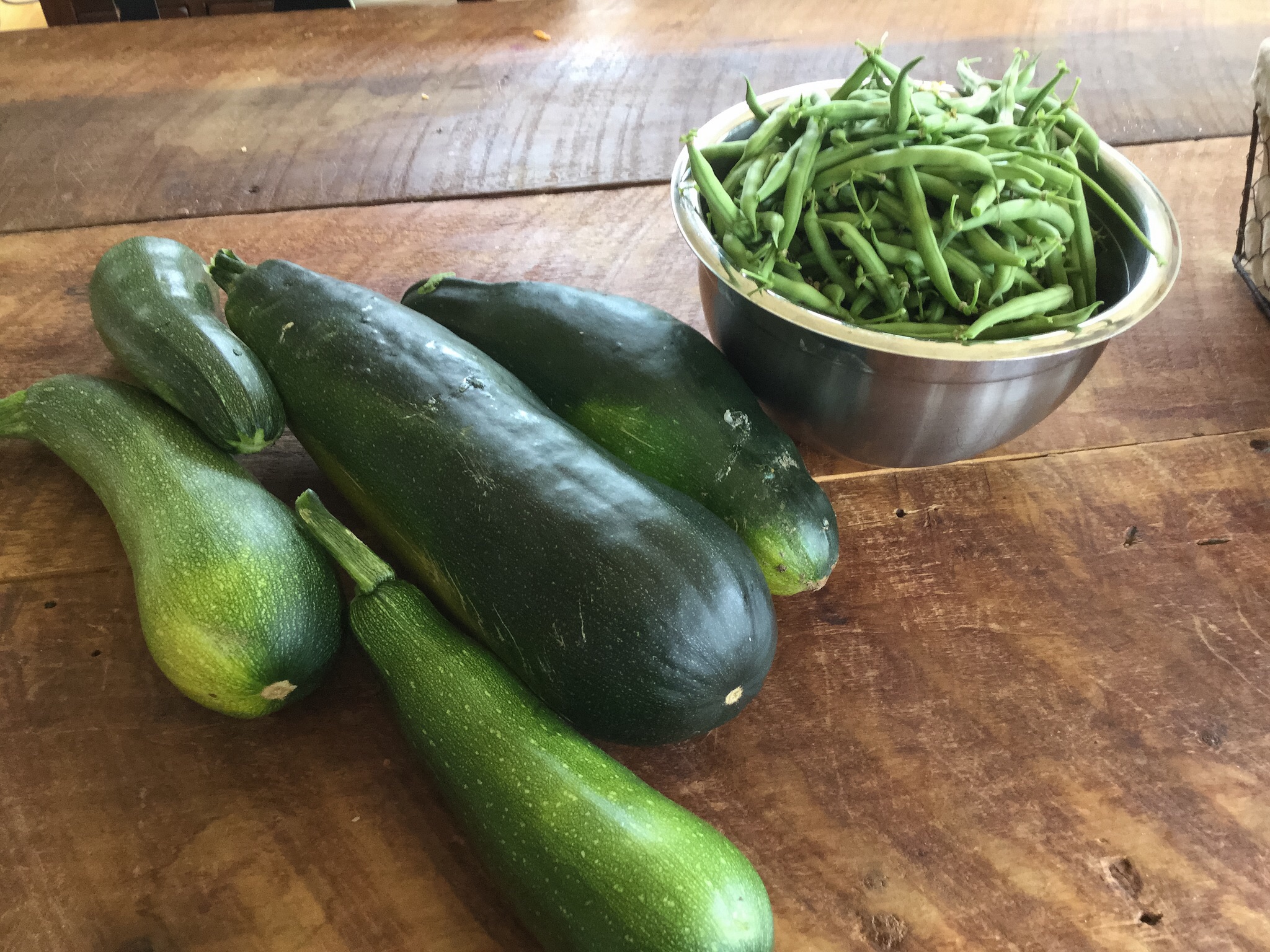 With me being gone and no weeding being done for 16 days, the garden certainly had some issues. Thankfully, though, he deep mulch method really seems to have kept it from getting out of hand entirely. I was able to go in and get much of the weeds taken care of fairly easily. I also picked a good number of zucchini and cucumbers. I’m keeping my eye on the squash bug situation, though, because despite liberal applications of Neem oil before I left th country, there are what feels like an unmanageable amount of the little bastards all over everything. I sprayed more neem in the evening after the bees had gone in for th night, and have been picking them off as much I can, but I have so very many plants and only me to manage it. So, fingers crossed!