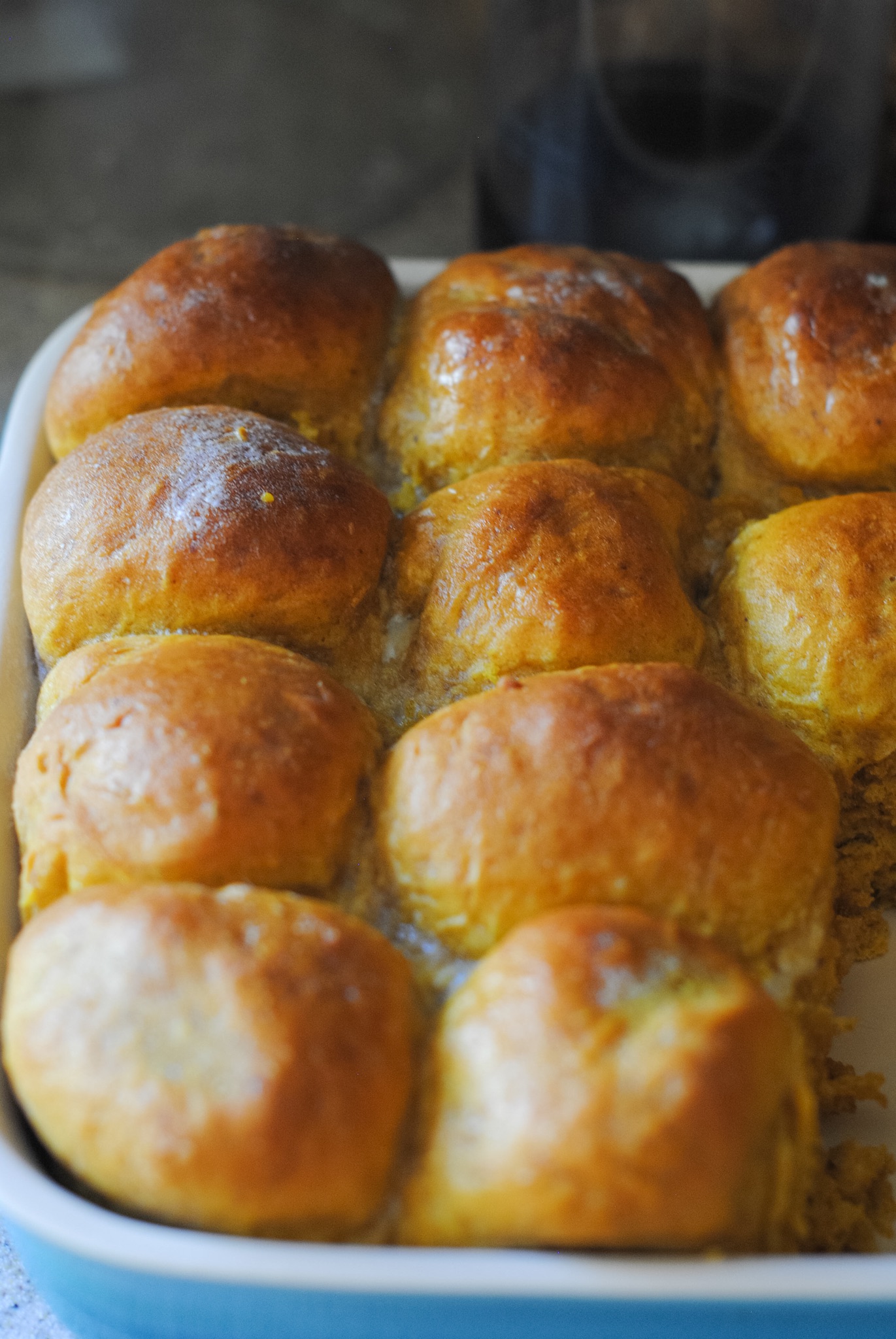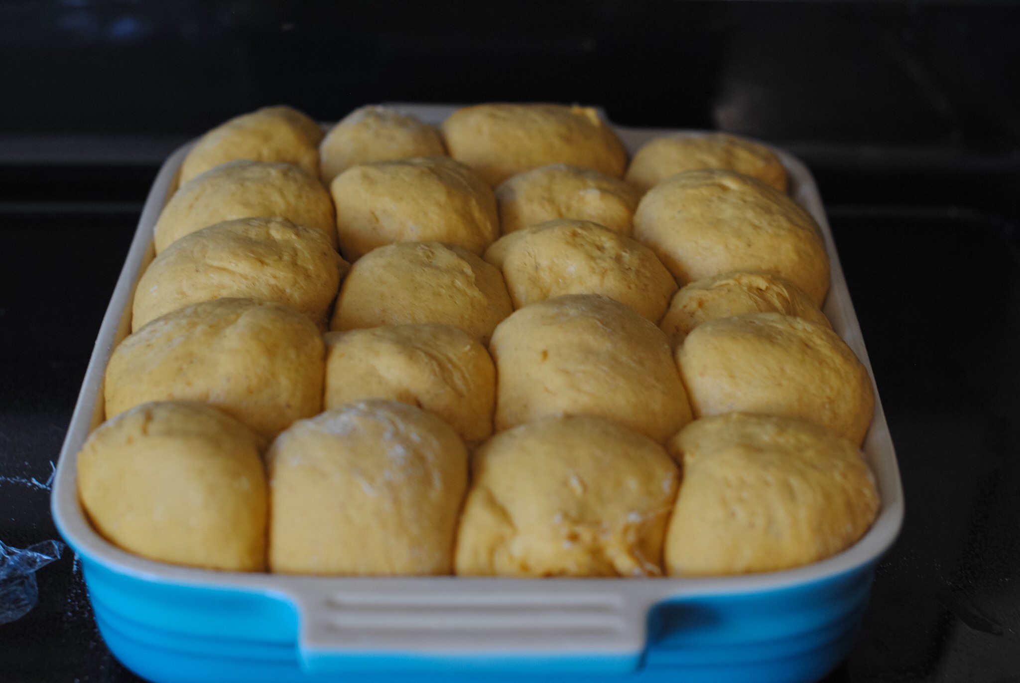I left out the cranberries this time; Paul isn’t crazy about them, and I wanted to see how they’d do as plain pumpkin rolls.