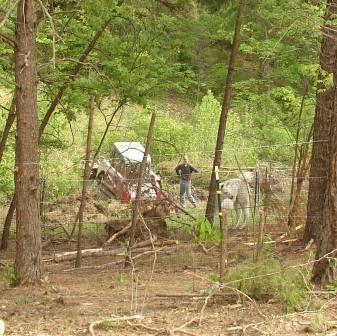 So our neighbor, Jack, did what the tow truck guy wouldn’t. He drove down the power line path to try and pull it out from that side.