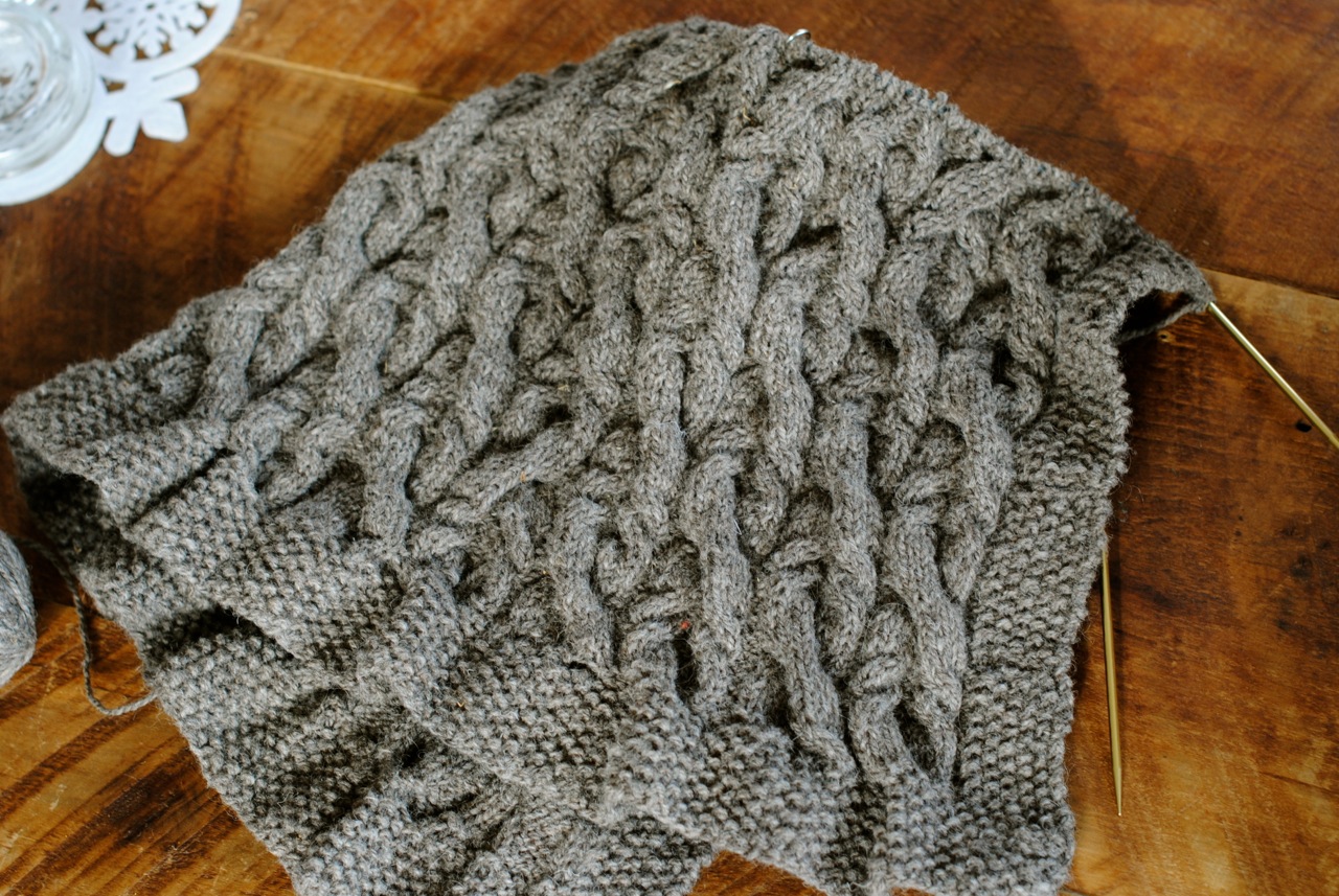 It needs a blocking and to be sent off, so I will save the details and good photos until it has arrived in the hands of its recipient. I will say that it was very enjoyable to knit and I used JMF Sabine. It was knit in bits and spurts mostly during school mornings while the girls were working on reading, or their new project, art journals.