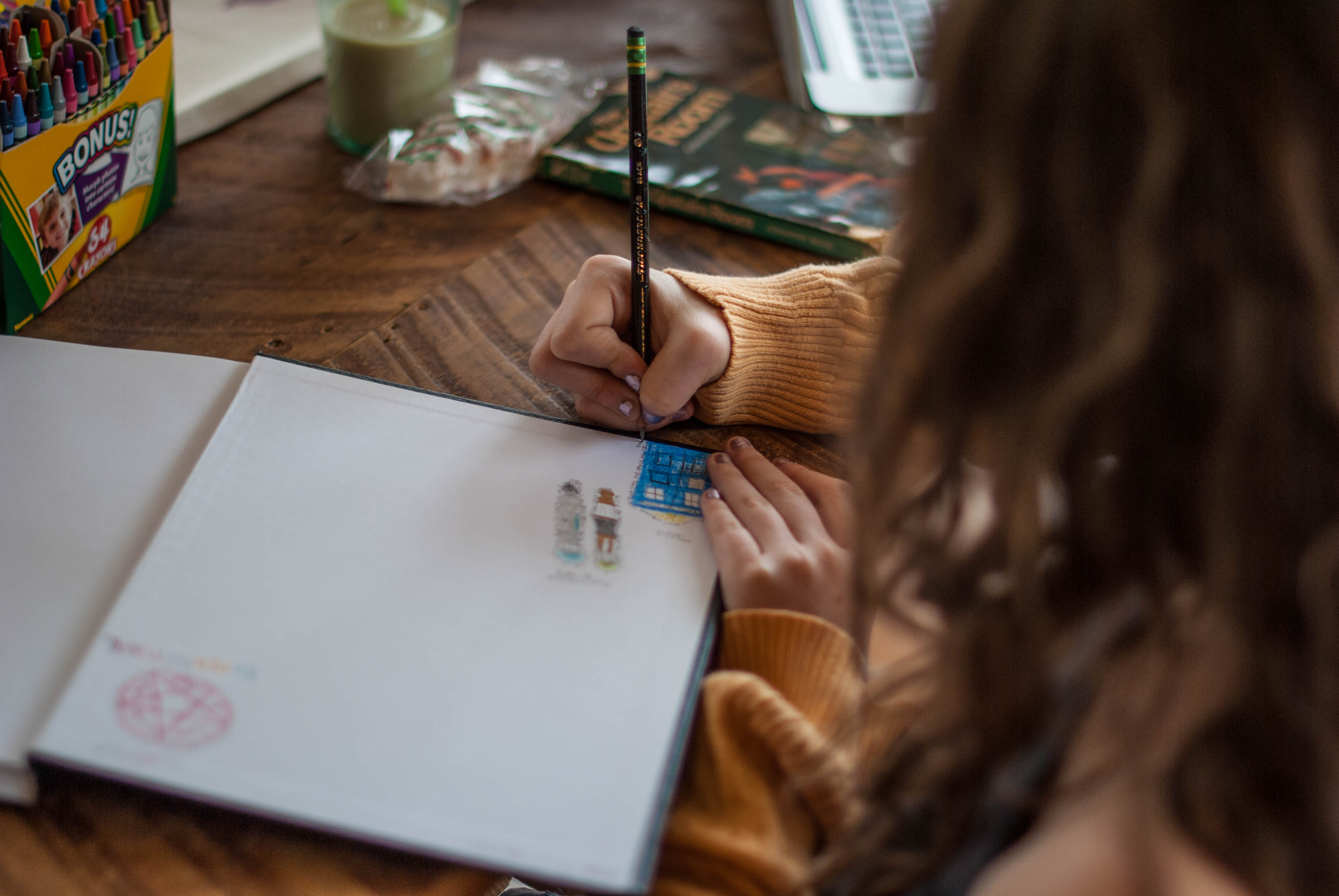 Neve enjoyed working on her title page, which was all about her and the things she enjoys. However, when I gave them the task of dedicating a page to all things “November”, the results were less than enthusiastic from my middle child. It was mostly just a statement written out.