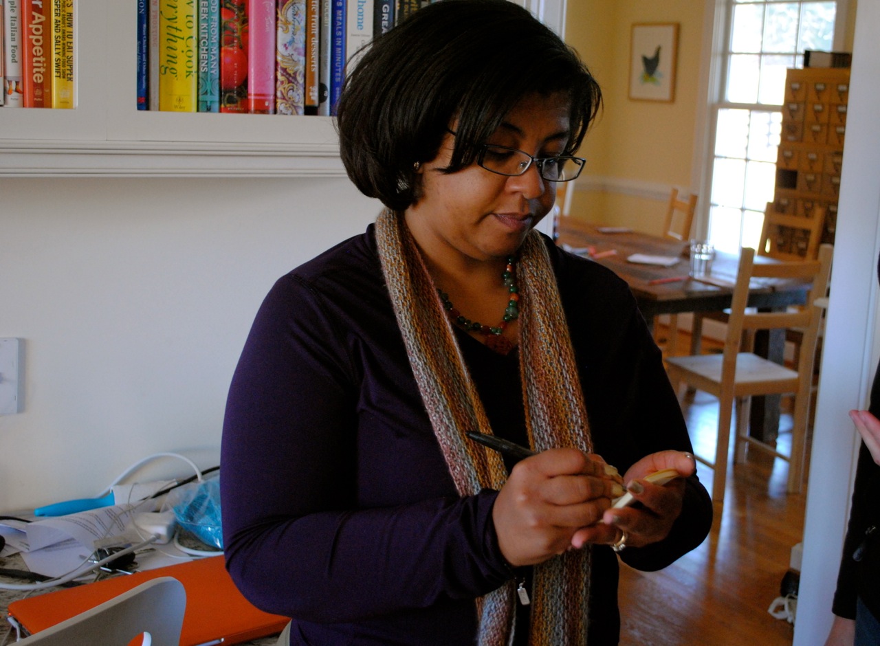 Normally I don’t wash my yarn before using it; but since this is share yarn from Juniper Moon sheep, it was milled with a lot of lanolin left in it. It feels heavenly on your skin (and smells wonderful as well) but you have to account for how much your yarn will change after washing if you don’t do it before you knit. It’s easier to wash your yarn first, so you know exactly how much the wool will bloom for your finished object.
