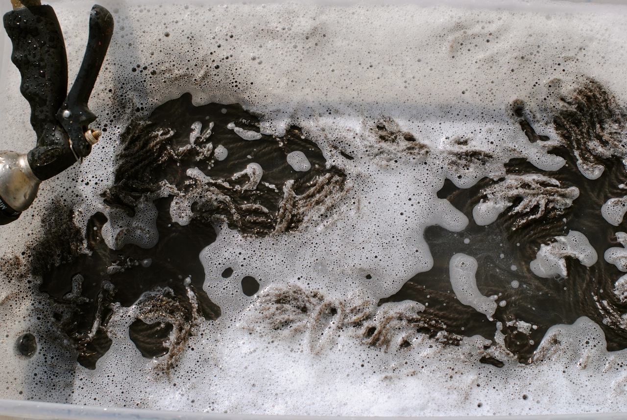 I left it there for a little over an hour while I took care of some other things, and then gently and lightly rinsed it with clean water (some people also use a mix of water and vinegar). Then, on to the laundry spinner!