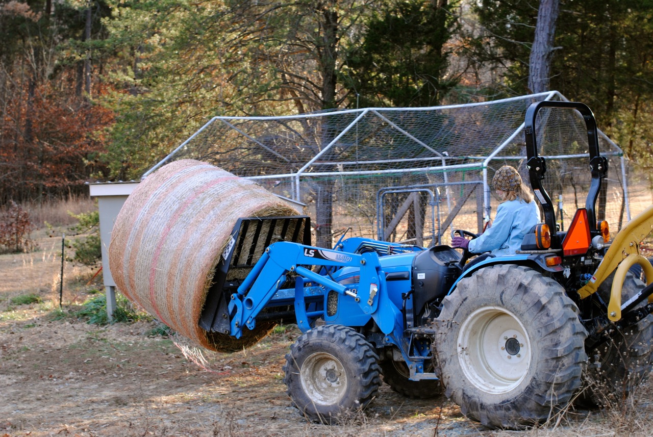 It’s not so much that it is difficult work, but that it is slow going. You have to be very careful going down the hill with such a heavy load on the spear, and you have to line up cinder blocks for each and every bale.
